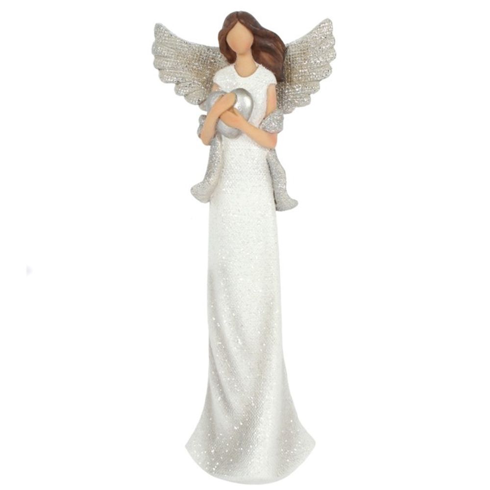 Amara is a medium sized angel with a subtle glittering finish and understated metallic silver detailing to her wings. A beautiful ornament for the home. Product Dimensions: H25cm x W9cm x D6cm Packaged Dimensions: H27cm x W9cm x D7cm