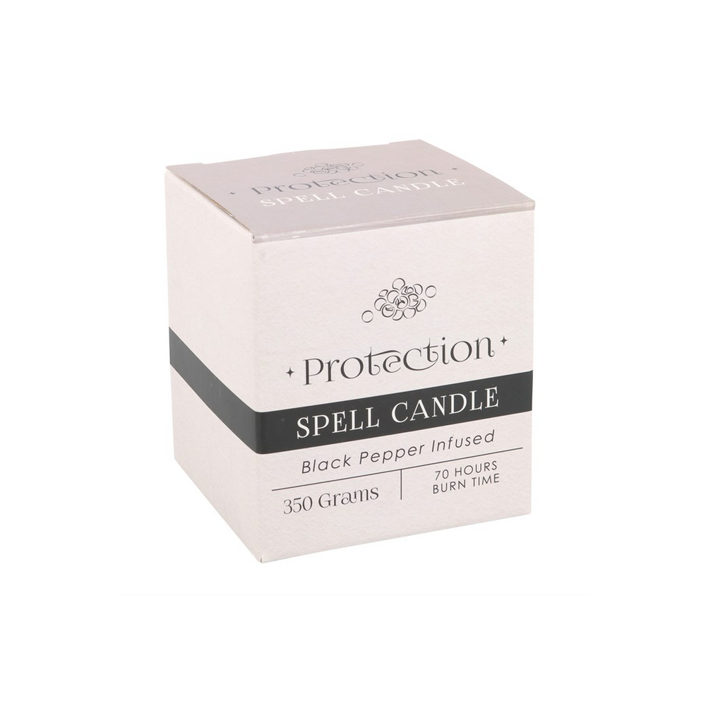 Protect your energy. Attract protection, security and comfort with this beautiful spell jar candle. Candle magic is one of the simplest forms of manifestation in which you decide on a goal, light the candle, visualise the end result and focus intent to manifest that result. Infused with the bold notes of black pepper to shield against negative vibrations. Beautifully packaged in a frosted glass jar with a cork lid, this candle will attract all things divine whether used as decor or as a ritual tool. This candle has a total burn time of 70 hours to fill your space with spellbinding fragrance. Do not burn for more than 4 hours at a time.