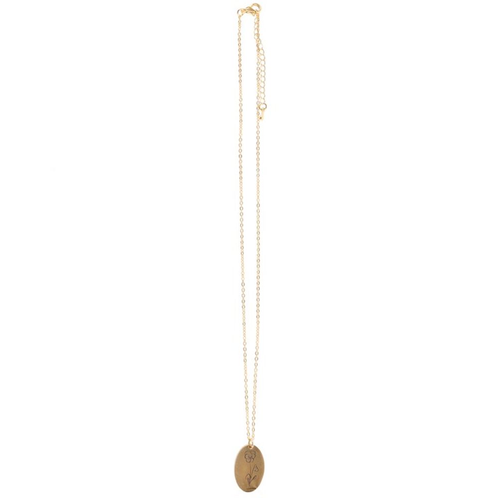 This lovely greeting card features a timeless wildflower design and holds a gold-tone necklace adorned with the recipient's birth flower, making it a thoughtful surprise for birthdays, Mother's Day, milestone moments and more. Symbolising virtue, modesty and humility, the violet is a meaningful token for those born in the month of February. Includes engraved flower charm on a 22cm nickel-free chain. Card left blank inside. Envelope included.