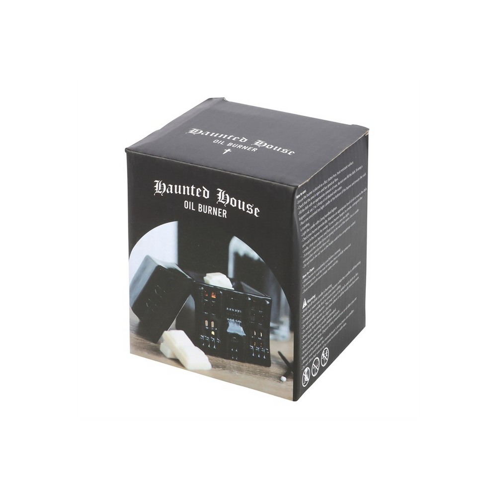 Embrace the 'spirit' of Halloween year-round with this spookily stylish haunted house oil burner. When a lit tealight is placed inside, the flickering flame casts eerie shadows, creating a bewitching atmosphere. A great piece for those who appreciate unconventional style and gothic decor. Recommended for use with fragrance oil diluted with water. Do not use more than one tealight and remove lid when in use.