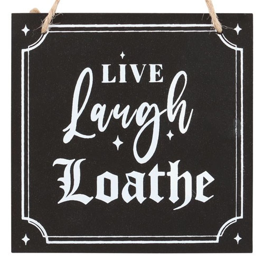 A unique twist on the popular phrase 'Live, Laugh, Love' this sign embraces dark humour and instead reads 'Live, Laugh, Loath'. Perfect for those who know how to hold a grudge.