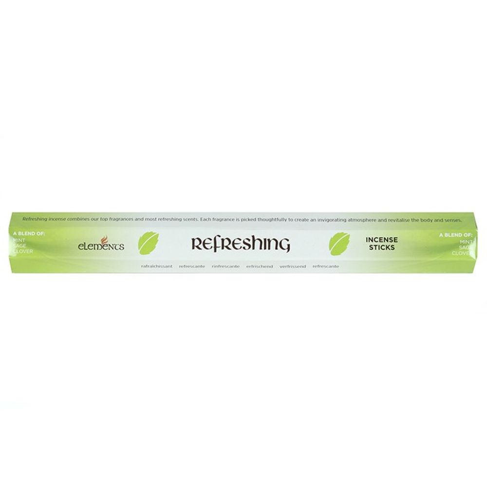 A box of 6 packs of Refreshing fragranced incense sticks by Elements which include notes of mint, sage and clove. Each pack contains 20 incense sticks. Product Dimensions: H2.5cm x W24cm x D3cm Packaged Dimensions: H5.5cm x W25cm x D9cm