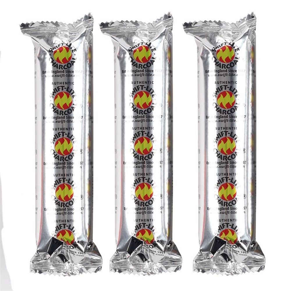 Box of 80 Excelsior swift lite charcoal discs. The box contains 8 individually wrapped packs of 10 discs. The charcoal tablets are commonly used for burning resins, powdered herbal blends and loose incense. The disc should be placed in a fireproof bowl before lighting (our mini cast iron cauldrons are ideal for this), let the charcoal disc heat up - much like as you would with a BBQ, before sprinkling incense, resin or fragranced powder over it. Product Dimensions: H1cm x W3cm x D3cm Packaged Dimensions: H7cm x W13.5cm x D14cm