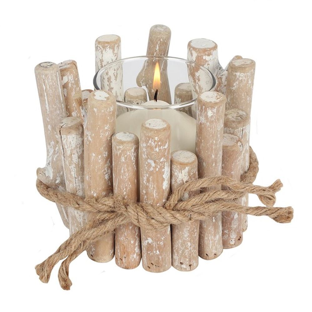 White Washed Driftwood Candle Holder