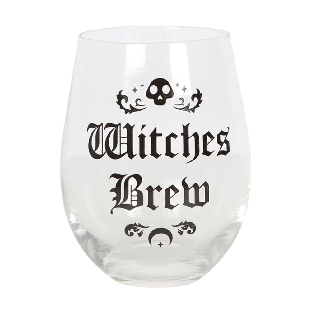 Concoct your own magic potions with this witches brew stemless wine glass. The glass features the text 'Witches Brew' in gothic blackletter. Product Dimensions: H12cm x W9cm x D9cm Packaged Dimensions: H13cm x W9.5cm x D9.5cm