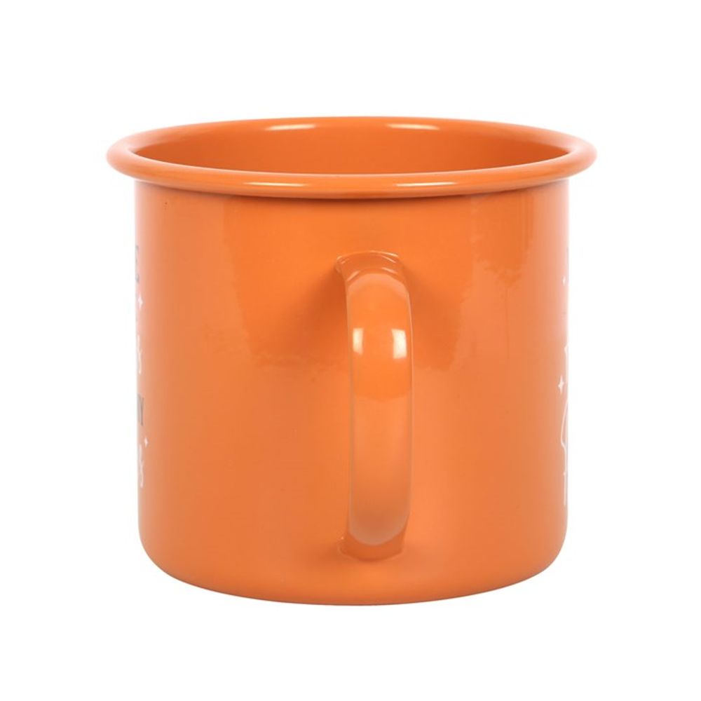 Even witches need to keep hydrated! This enamel-style mug features fun 'You're the hocus to my pocus' text on an orange base that's great for spooky brews. Do not microwave or use over open flame. Hand wash only.