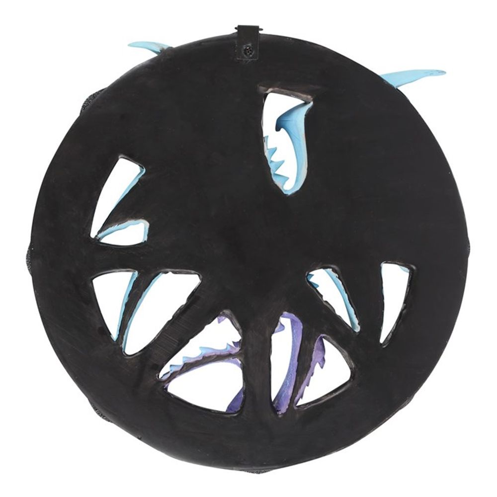 Experience the captivating beauty of the winter season with this stunning resin wall art plaque featuring the 'Yule' dragon artwork by renowned fantasy artist Anne Stokes. The 3D design showcases a circle of sabbat symbols and a magnificent blue ice dragon with razor sharp icicles for horns. The symbol for the Winter Solstice, Yule, is depicted above the dragon, and the intricate snowflake pattern on the dragon's scales and the ice shards in its breath add a touch of frosty magic. This awe-inspiring artwork is part of the 'Dragons of the Sabbats' series by Anne Stokes. Product Dimensions: H27cm x W26.7cm x D4cm Packaged Dimensions: H31.5cm x W31.5cm x D8.5cm